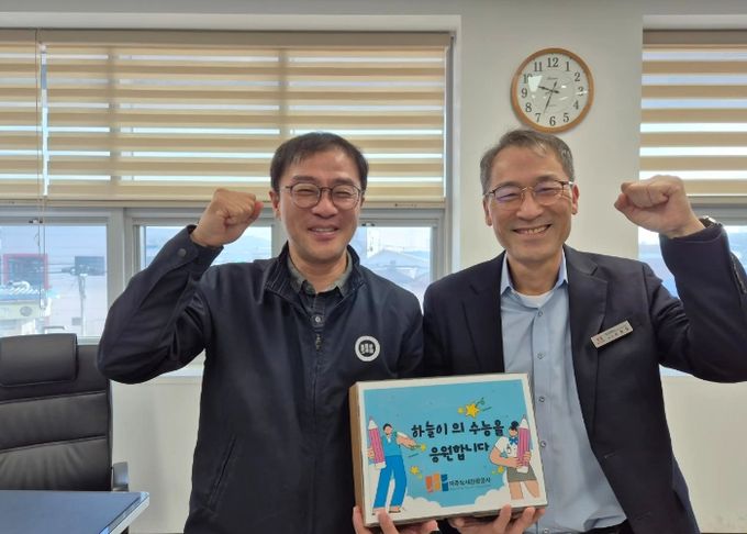 (정도일보) 파주도시관광공사는 11월 11일 2025학년도 대학수학능력시험에 응시하는 직원의 자녀들에게 응원의 선물을 전달했다.