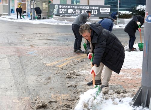 갑작스런 혹한에도 불구하고 영광군 주민과 함께 상가 주변, 인도, 승강장 앞 등 군민들의 출퇴근 및 등ㆍ하굣길 통행 불편 해소와 빙판길로 인한 낙상 사고 예방을 목표로 눈을 치웠다.