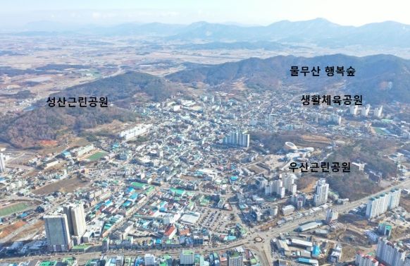 성산근린공원은 현재 역사와 생태가 어우러진 근린공원으로 만들기 위해 인구소멸대응기금 60억 원과 군비 40억 원 등 100억 원의 사업비로 공원조성사업을 추진하고 있는데, 통일신라 말에서 고려 초기 토성과 조선시대 읍성이 존재하고 있어 이곳을 훼손하지 않고 개발하기 위해 추진하고 있는‘문화유산 정밀발굴조사’를 금년 상반기 중 완료하고 하반기에 본 사업을 착공할 계획이다. 특히 성산근린공원은 천년의 숨결이 느껴지는 유적을 보존하고 현재를 살아가는 후손이 그 안에서 파크골프와 산책을 즐길 수 있는 과거와 현재가 공존하는 모델의 공원을 조성하는데 힘을 모으고 있다.