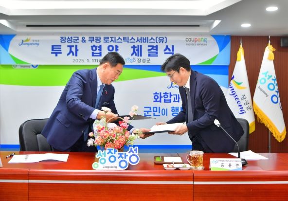 (정도일보) 장성군이 새해 고용 창출과 경제 활성화의 신호탄을 쐈다. 군은 17일 군청 상황실에서 쿠팡로지스틱스서비스 유한회사와 ‘장성 서브허브’ 신설 투자협약을 체결했다. 김한종 장성군수, 홍용준 CLS 대표, 이개호 국회의원 등 관계자 10여 명이 협약식에 참석했다.