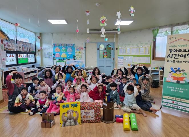 이번 프로그램은 시니어돌봄자원봉사단이 참여해 친근하고 정감 있는 목소리로 어린이들에게 '토끼와 거북이', '손톱 먹은 들쥐' 등 전래동화와 동요를 들려주고 투호와 윷놀이 같은 전통놀이를 함께하며 세대를 잇는 특별한 활동으로 구성되어 어린이들과 교감하고, 아이들에게 소중한 추억을 선물했다.