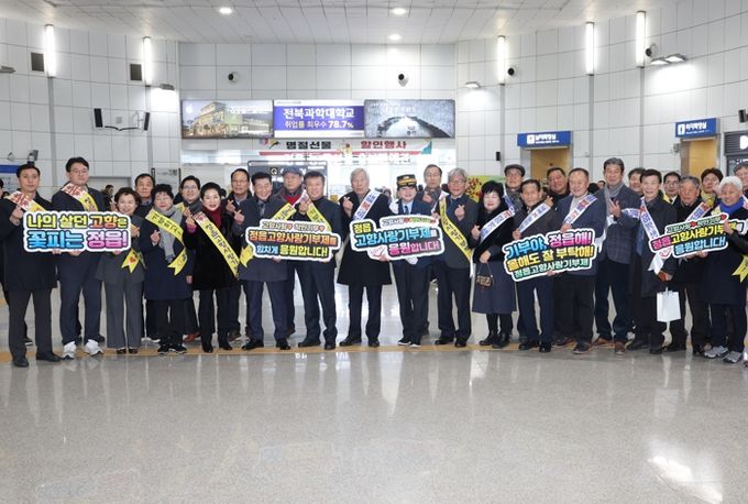 (정도일보) 정읍시와 정읍시애향운동본부가 설 명절을 맞아 귀성객 환영 행사를 진행하며 고향을 찾은 이들에게 따뜻한 환대를 선사했다.
