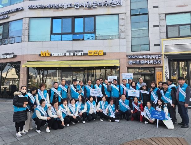 (정도일보) 2026여수세계섬박람회 범시민준비위원회가 설 명절 연휴 기간 관내 식품업소 사업장 및 관광객을 대상으로 섬박람회 홍보활동을 펼쳤다.