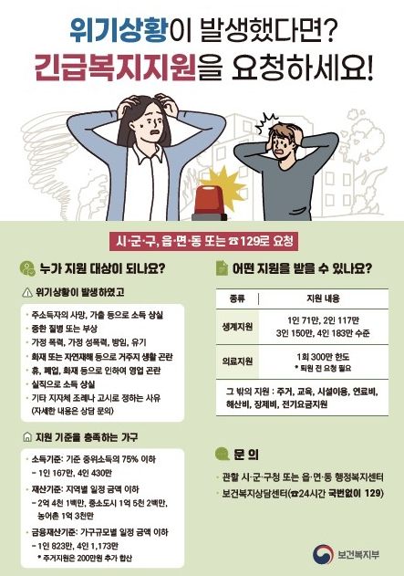 긴급복지 지원이 필요한 시민들은 읍·면·동 행정복지센터, 시청 사회복지과, 보건복지상담센터, 희망복지지원단 콜센터를 통해 상담·지원을 요청할 수 있다.