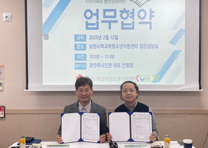 이에 정일신 센터장은 “광한루사진관의 적극적인 협력에 깊은 감사를 드린다”라며, “긴밀한 업무 협력체계를 구축하여 학교 밖 청소년들이 건강한 사회구성원으로 성장하는 밑거름이 되도록 최선을 다하겠다”라고 말했다.