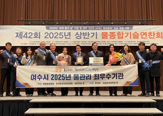 (정도일보) 여수시가 13일 경주 라한호텔에서 개최된 2025년 상반기 물종합기술연찬회에서 ‘2025년 물관리 최우수기관’으로 선정돼 기관 표창을 받았다.