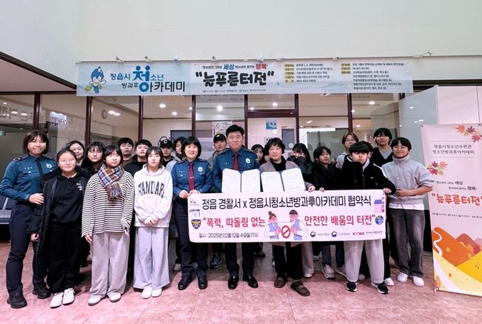 정읍시 청소년방과후아카데미와 정읍경찰서는 지난 12일, 지역사회 청소년 보호와 건강한 성장을 위해 협력 강화를 위한 협약을 체결했다.