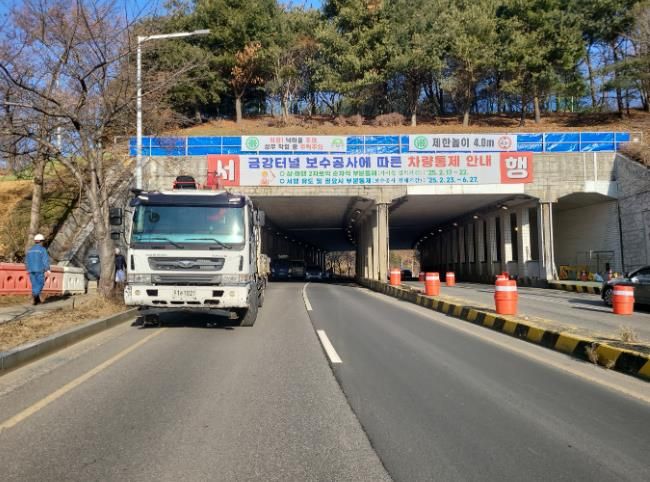 시는 작년 4월경 금강터널 남측 갱문 상단에서 콘크리트 균열 및 탈락 등이 발생하자 이에 대한 긴급 안전조치를 시행했다.