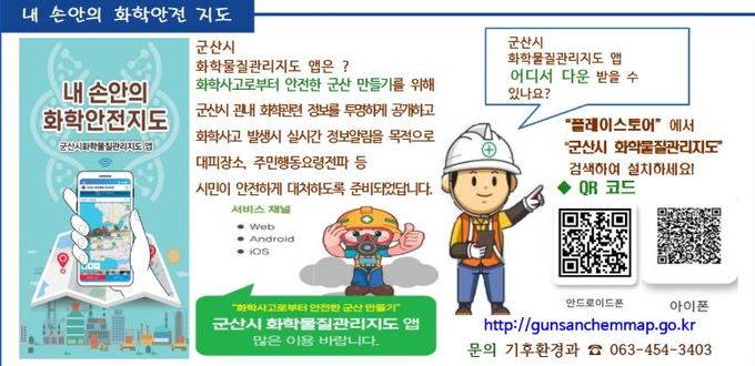 (정도일보) 군산시가 화학물질로부터 안전한 도시가 되기 위해 본격적인 군산시 화학물질관리지도 앱 홍보에 나섰다.