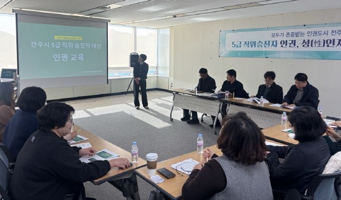이영숙 전주시 인권법무과장은 “이번 교육을 통해 승진자들이 인권과 성인지 감수성을 갖춘 리더로서 조직문화를 선도해 나가길 기대한다”면서 “앞으로도 공직사회 전반에 인권 친화적인 환경을 조성하기 위해 지속적으로 노력하겠다”고 말했다.