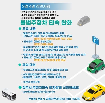 최준범 전주시 대중교통국장은 “주차단속 유예와 공영주차장 확충으로 시민 불편 해소와 지역경제 활성화에 도움이 될 것으로 기대한다”면서 “주차정책은 시민의 일상과 직결되는 만큼, 앞으로도 시민의 눈높이에 맞는 사업 추진에 최선을 다하겠다”고 말했다.