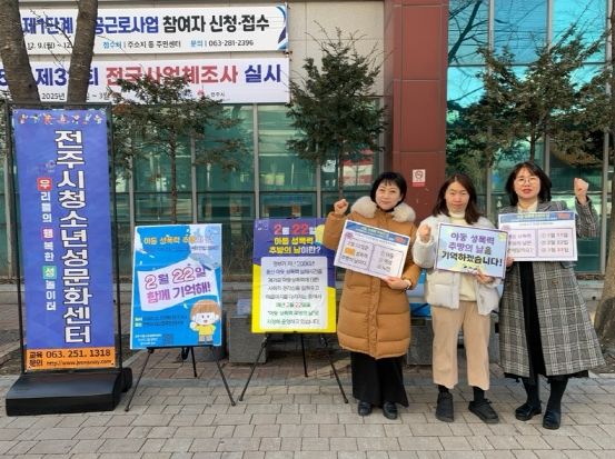 특히 이번 캠페인에는 전주와 군산, 익산, 정읍 등 전북특별자치도내 4개 청소년성문화센터가 함께 참여해 아동 성폭력 근절을 위한 동참을 호소했다.