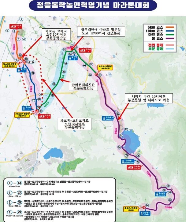 자세한 대회 코스와 통제 구간은 정읍동학마라톤대회 홈페이지에서 확인할 수 있다.