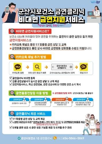 군산시보건소 관계자는 “시간과 장소에 구애받지 않는 비대면 금연 지원 서비스로 많은 시민들이 금연에 성공할 수 있도록 지원하겠다.”라고 말했다.