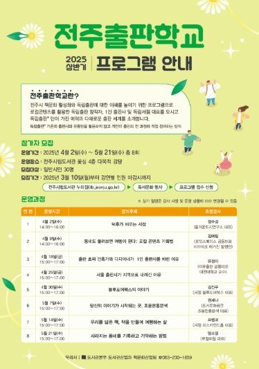 시는 ‘2025 전주출판학교’ 상반기 독립출판 특강 참가 신청을 전주시립도서관 누리집(lib.jeonju.go.kr)을 통해 접수한다고 12일 밝혔다.