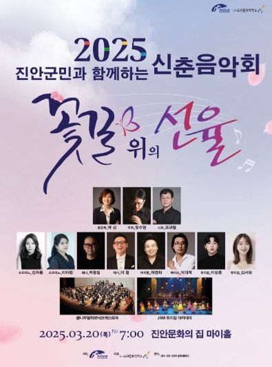 (정도일보) 진안군은 오는 20일 저녁 7시 진안문화의 집 마이홀에서 2025년 신춘음악회 ‘꽃길 위의 선율’을 선보인다.