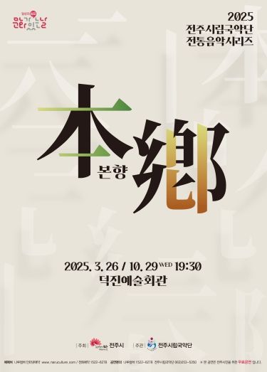 (정도일보) 전주시립국악단(예술감독 겸 지휘자 심상욱)은 오는 26일 덕진예술회관에서 3월 문화가 있는 날을 맞아 ‘本鄕(본향)’ 공연을 선보일 예정이라고 19일 밝혔다.