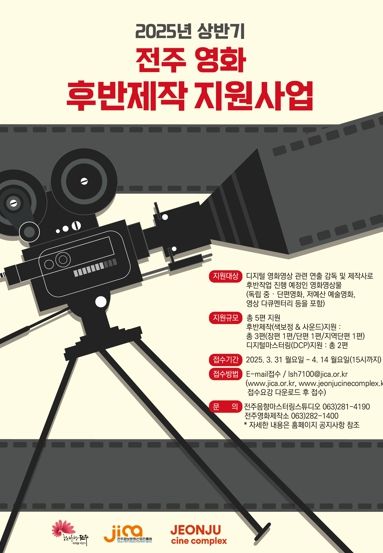 전주시와 전주정보문화산업진흥원은 국내 독립영화 제작환경을 활성화하고, 창의적이고 실험적인 작품들의 완성도를 높이는 데 기여하기 위해 오는 31일부터 4월 14일까지 ‘2025년 상반기 전주 영화 후반제작지원 사업’ 참여 신청을 접수한다.