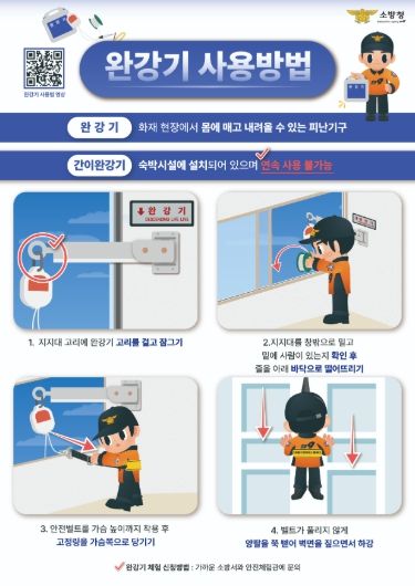 유경환 화재예방과장은 “화재 발생 시 완강기는 생명을 지키는 중요한 피난기구”라며 “평소 사용법을 숙지해 유사 시 신속하고 안전하게 탈출할 수 있도록 대비해야 한다”고 강조했다.