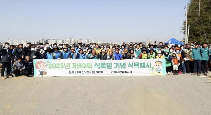 (정도일보) 안성시가 3월 26일 제80회 식목일을 맞아 공도읍 양기리 산73-1번지 일원 벌채지 1.70ha(약 5,152평)에 화백나무 4,250본을 식재하는 식목행사를 개최했다고 밝혔다. 이번 행사에는 공도읍 주민과 한전MCS 직원, 기업인, 공무원 등 300여 명이 참여해 지역 공동체가 함께 나무를 심는 뜻깊은 시간을 가졌다.