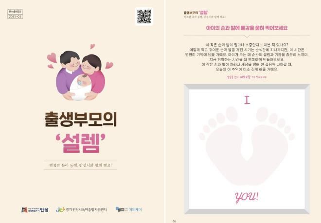 안내서는 ▲부모교육 ▲상담 ▲부모·자녀 체험 프로그램 ▲놀이실 이용 ▲장난감·도서 대여 ▲돌·백일상 대여 ▲부모 행사 등 총 32개의 양육 지원사업을 담고 있으며, 출생 부모가 필요한 정보를 한눈에 확인하고 활용할 수 있도록 안성시육아종합지원센터(이하 ‘센터’)에서 제작했다.