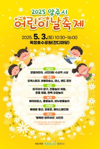 양주시는 오는 5월 3일 관내 옥정호수공원에서 ‘2025 양주시 어린이날 축제’를 개최한다고 밝혔다.