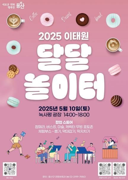 (정도일보) 서울 용산구가 이태원관광특구 활성화를 위해 오는 5월 10일 토요일 오후 2시부터 6시까지 이태원 녹사평광장(이태원동 34-2)에서 ‘2025. 이태원 달달 놀이터’를 개최한다.