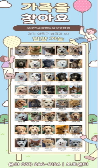 이번 캠페인을 통해 입양할 수 있는 유기동물은 안산시 유기동물보호소(청곡길 50)에 보호 중인 유기동물 40마리다. 입양을 희망하는 시민은 행사장에 전시되는 사진을 보고 현장에서 바로 입양 신청을 할 수 있다.
