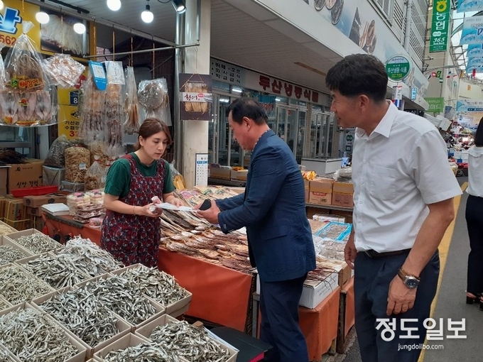 시는 30일까지 추석명절 대비 수산물 원산지 표시·지도 단속 사전 예고 기간으로, 재래시장 상인회 및 판매자 자율에 의한 준법 판매 분위기 조성을 위한 지도·홍보에 나섰다.