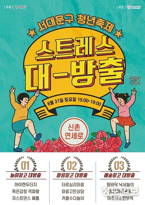 문석진 서대문구청장은 “청년들이 주도적으로 기획하고 참여하는 행사인 만큼, 청년들이 스트레스를 풀고 다양한 목소리를 낼 수 있는 맞춤형 축제가 되길 기대한다”고 밝혔다.