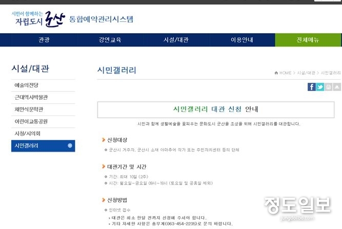 시에서는 대관 희망자의 편의를 위해 온라인 예약접수시스템을 구축했고 군산시청홈페이지에서 전시3개월전, 매달 1일부터 선착순으로 온라인 접수가 가능하다.