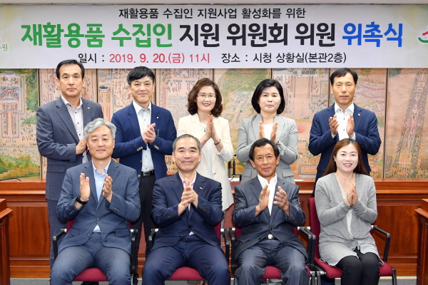 수원시는 20일 시청 상황실에서 수원시 재활용품 수집인 지원위원회 위원 위촉식을 열고, 8명에게 위촉장을 전달했다.