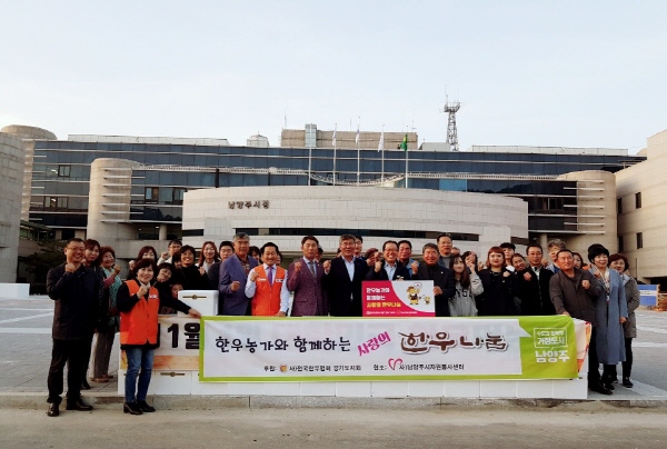 (정도일보) 전국한우협회 경기도지회와 남양주시지부은 지난 1일 시청 앞 광장에서 대한민국 한우먹는 날을 맞이해 한우불고기 400kg, 1천4백만원 상당의 사랑의 한우나눔 행사를 진행했다.