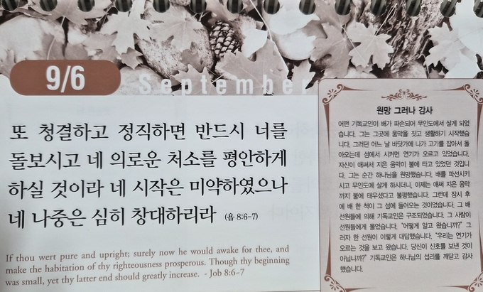 인생에 부족하다고 여기는 것이 반드시 나에게 필요한 것이 아닐 수 있습니다. 모든 사람들이 그토록 찾아 해매는 내면의 모든 만족을 주님은 이미 구원의 은혜를 통해 나에게 주셨습니다. 하나님이 주신 진정한 행복을 세상의 가치보다 더 소중히 여기십시오. 주님이 내 삶에 허락하신 행복이 몇 가지인지 생각해봅시다.