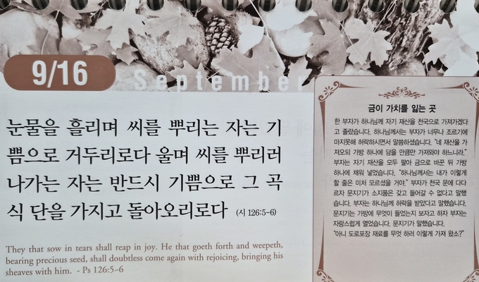 감사는 우리 마음에 심는 꽃의 씨앗입니다. 주님은 우리가 감사하는 사람이 되기를 원하십니다. 그리고 감사하는 사람에게 베푸실 수 있는 최고의 큰 복을 베풀어 주십니다. 셀 수 없는 은혜를 우리 삶에 베풀어 주신 전능하신 주 하나님 아버지께 매일 최고의 감사를 올려드리십시오. 어떤 상황에서도 감사의 이유를 찾아 주님께 감사의 기도를 드립시다.
