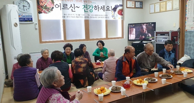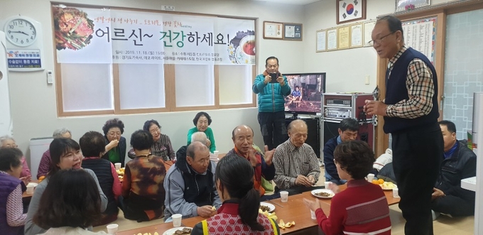 [수원=임승수 기자] 수원시 서둔동 센트라우스 아파트 경로당에서는 지난 18일 지역 어르신들과 경기도 기숙사, 에코라이프, 서둔마을카페, 한국차문화협동조합 등 30여명이 함께 해 연말연시 정나누기와 힐링의 시간을 가졌다.