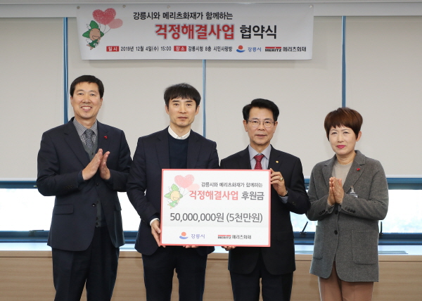 (정도일보) 강릉시는 메리츠화재와 지난 4일 8층 시민사랑방에서‘강릉시 - 메리츠화재 걱정해결사업 업무 협약’을 체결했다.