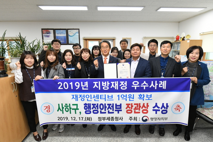 [부산= 안준희 기자] 부산 사하구(구청장 김태석)는 행정안전부 주최 ‘2019년 지방재정 우수사례’ 전국 공모전에서 행정안전부장관상을 수상하며 4년 연속 수상의 영광을 안았다.