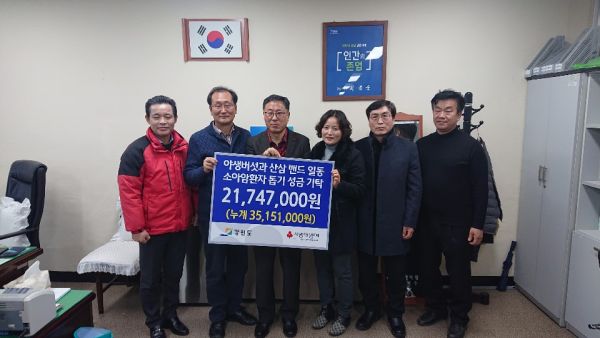 (정도일보) 네이버밴드 야생버섯과 산삼 동호회에서는 26일 연말을 앞두고 도내 소아암 환아 5명에게 21,747천원을 기탁했다.