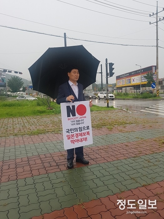 7일 경기도의회 김원기 부의장, 권재형 의원과 함께 ‘일본 경제보복 철회 촉구 1인 시위’펼쳐
