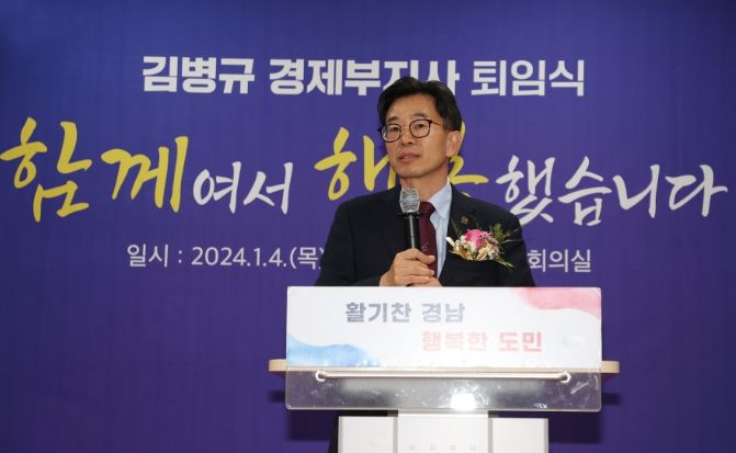 (정도일보) 경남도는 4일 도청 도정회의실에서 김병규 경상남도 경제부지사 퇴임식을 개최했다.