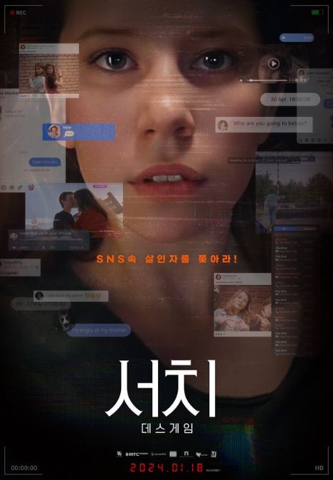 (정도일보) '서치' 제작진의 스크린라이프 스릴러 신작으로 화제를 불러일으킨 '서치:데스게임'이 '언프렌디드: 친구삭제', '롱디'의 뒤를 잇는 스크린라이프 장르 신작으로 기대를 모은다.[감독: 안나 자이체바 | 프로듀서: 티무르 베크맘베토프 | 출연: 안나 포테브냐, 티모페이 엘레츠키, 다이나 슐미나, 에카테리나 스튜로바 | 개봉: 2024.01.18]