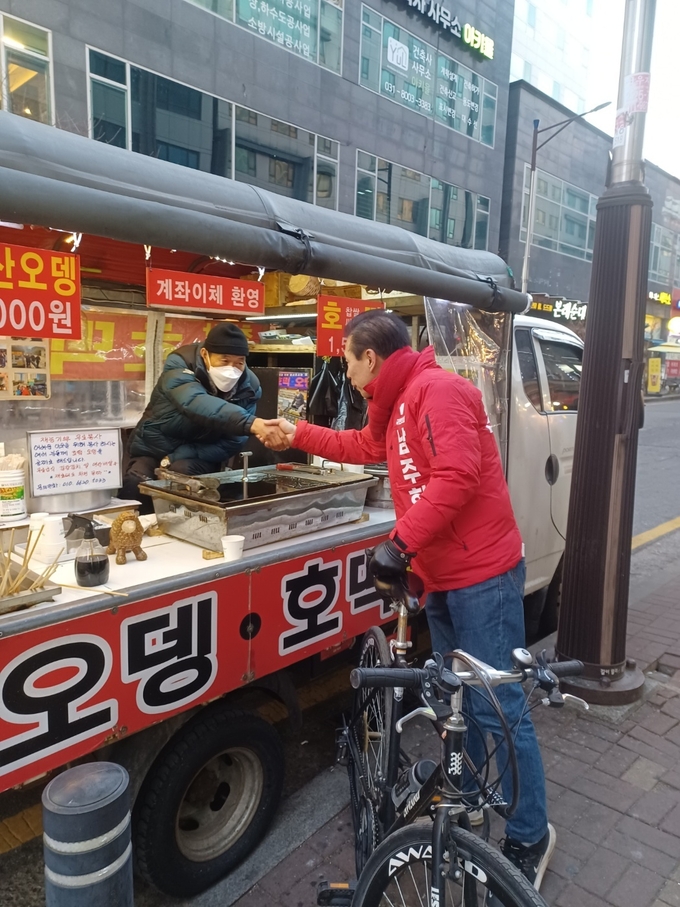 남주헌 예비후보는 자전거와 도보로 자신의 지역구를 샅샅이 돌아다니며 얼굴 알리기 및 지지를 호소하고 있다. 진중한 삶 가운데 발휘되는 강한 추진력이 그의 장점이다.