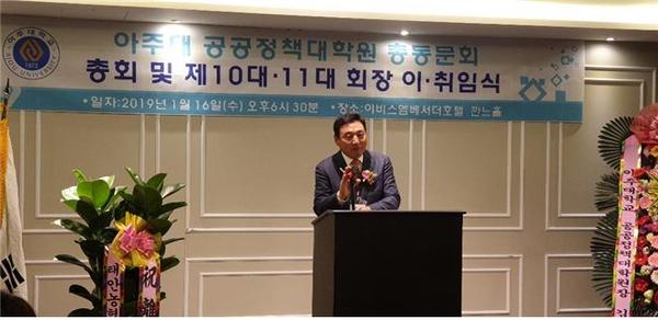 ▲ 지난 16일 석호현 자유한국당 화성(병) 당협위원장이 아주대 공공정책대학원 11대 총동문회장으로 취임해 ˝인간 중심의 계층간 사다리역활을 위한 사회적활동에 주력 하겠다˝고 강조했다.
