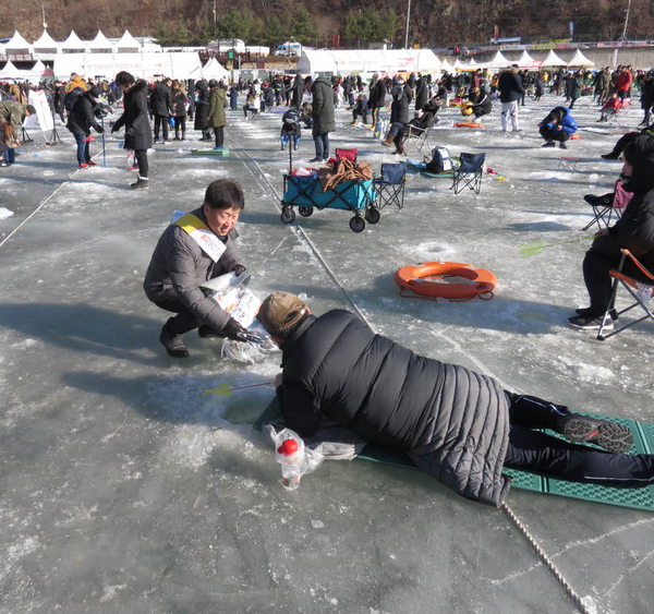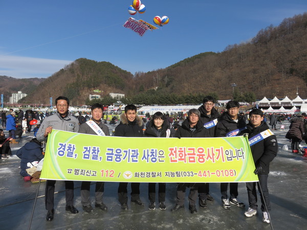 [강원=이재식 기자] 화천경찰서(서장 이규문)는 지난 18일 오후 2시 산천어축제장에서 관광객, 지역주민을 대상으로 신종 보이스피싱 수법 및 대응방안 등이 기재된 핫팩·전단지를 배부하며 전화금융사기 예방 캠페인을 실시했다.