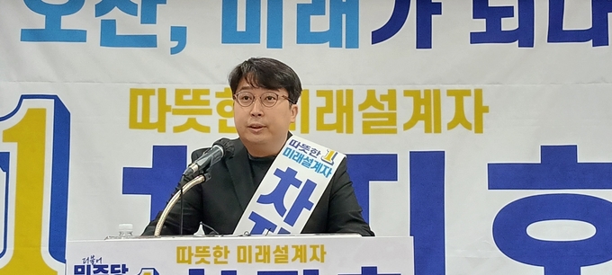 [정도일보 김제영/ 김현섭 기자] 차지호 오산시 더불어민주당 후보가 18일 오전 오산시청 물향기실에서 기자회견을 열고 출마 선언을 했다.