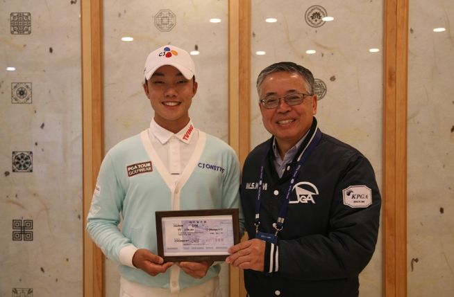 선수들을 대표해 김백준은 “올 시즌부터 KPGA 투어에서 활동할 수 있게 된 것만으로도 보람찬데 이렇게 첫 공식 상금을 기념할 수 있는 액자를 받아 ‘루키’로서 뿌듯하고 감동”이라는 소감을 전했다.