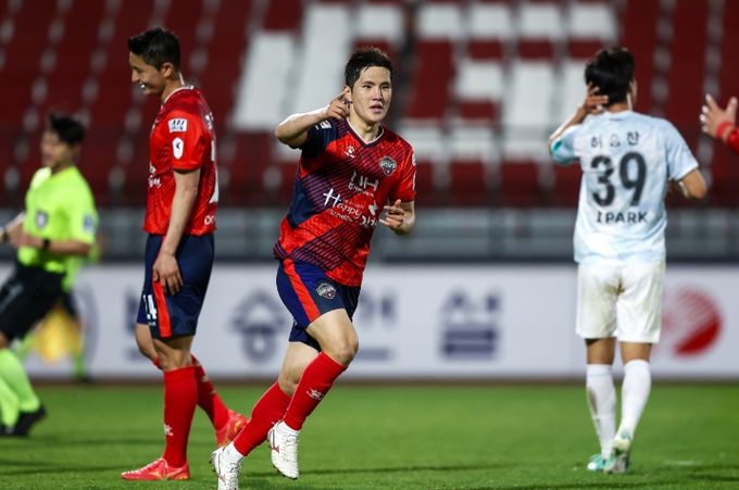 동점 골을 노리던 김천상무는 끝내 결과를 만들어 냈다. 전반 40분, 침투하는 김민준을 향해 유강현이 환상적인 발리 패스를 내주었고, 김민준이 단독 돌파 끝에 기어이 동점 골을 만들어 내며 전반전을 마쳤다.