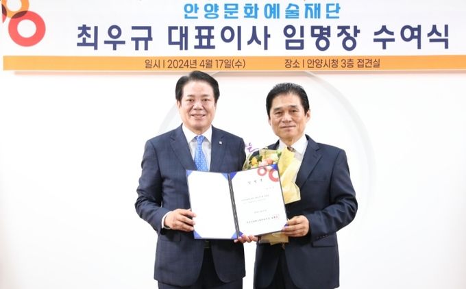 재단은 올해 1월부터 신임 대표이사 채용 공고 및 접수, 서류와 면접 심사, 이사회 의결 등의 절차를 거쳐 최우규 전 의장을 신임 대표이사로 선정했다. 최 대표이사는 안양시의회 인사청문회를 거쳐 지난 17일 임명장을 받았다.