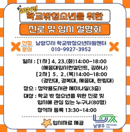 남양주시 꿈드림센터 , 학교 밖 청소년을 위한 진로 및 입시 설명회 오는 23일 개최